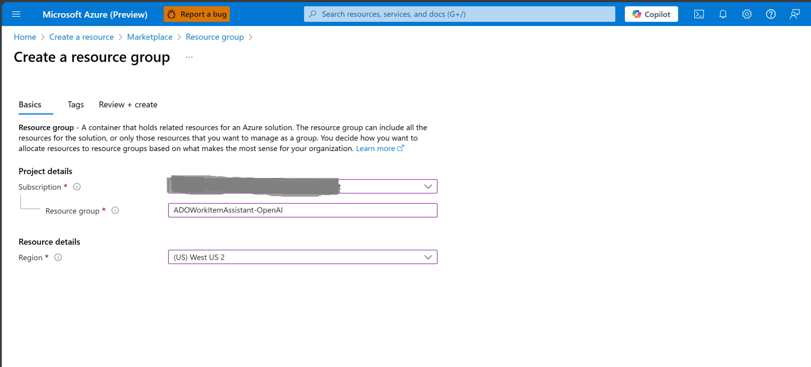 • On the Create Azure OpenAI page, provide the following information for the fields on the Basics tab: